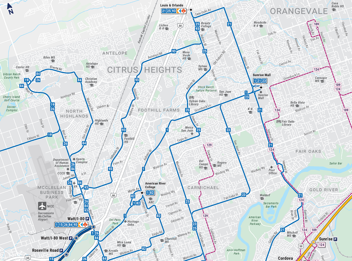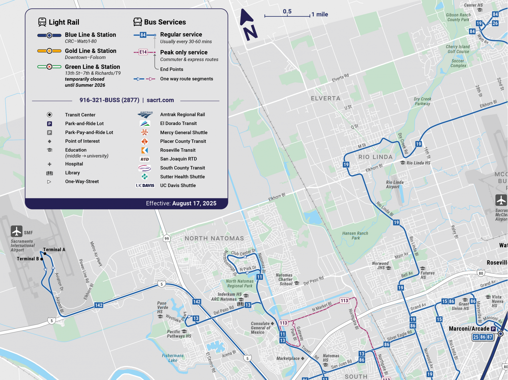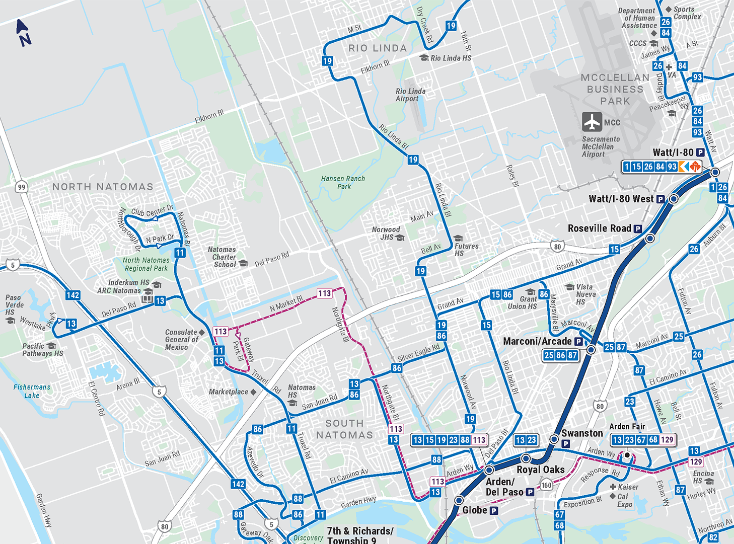 Highlights of the new SacRT System Map include: