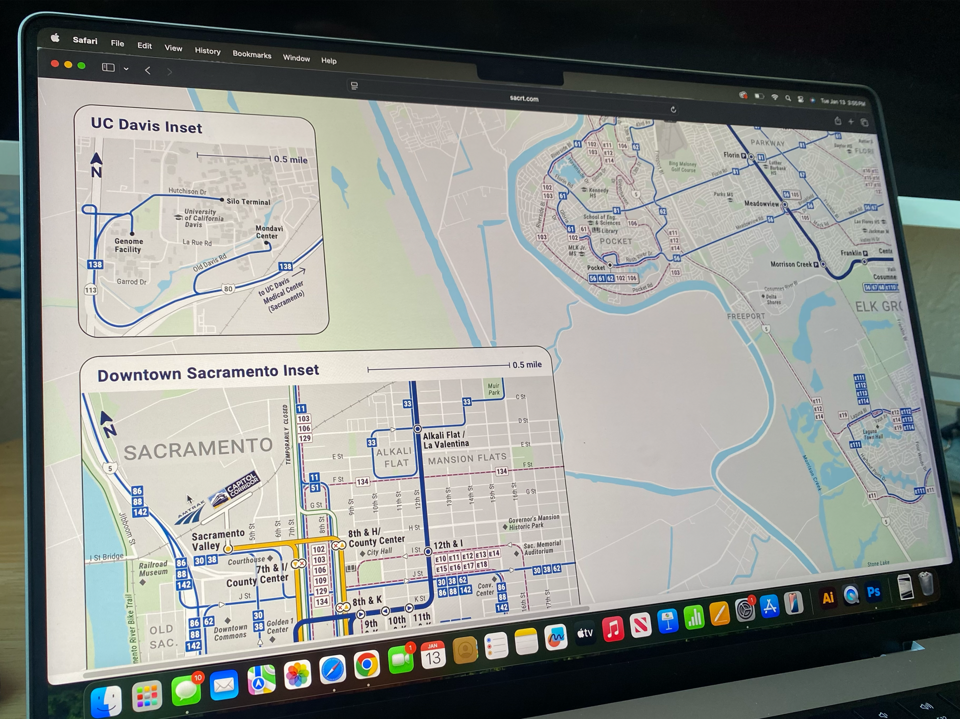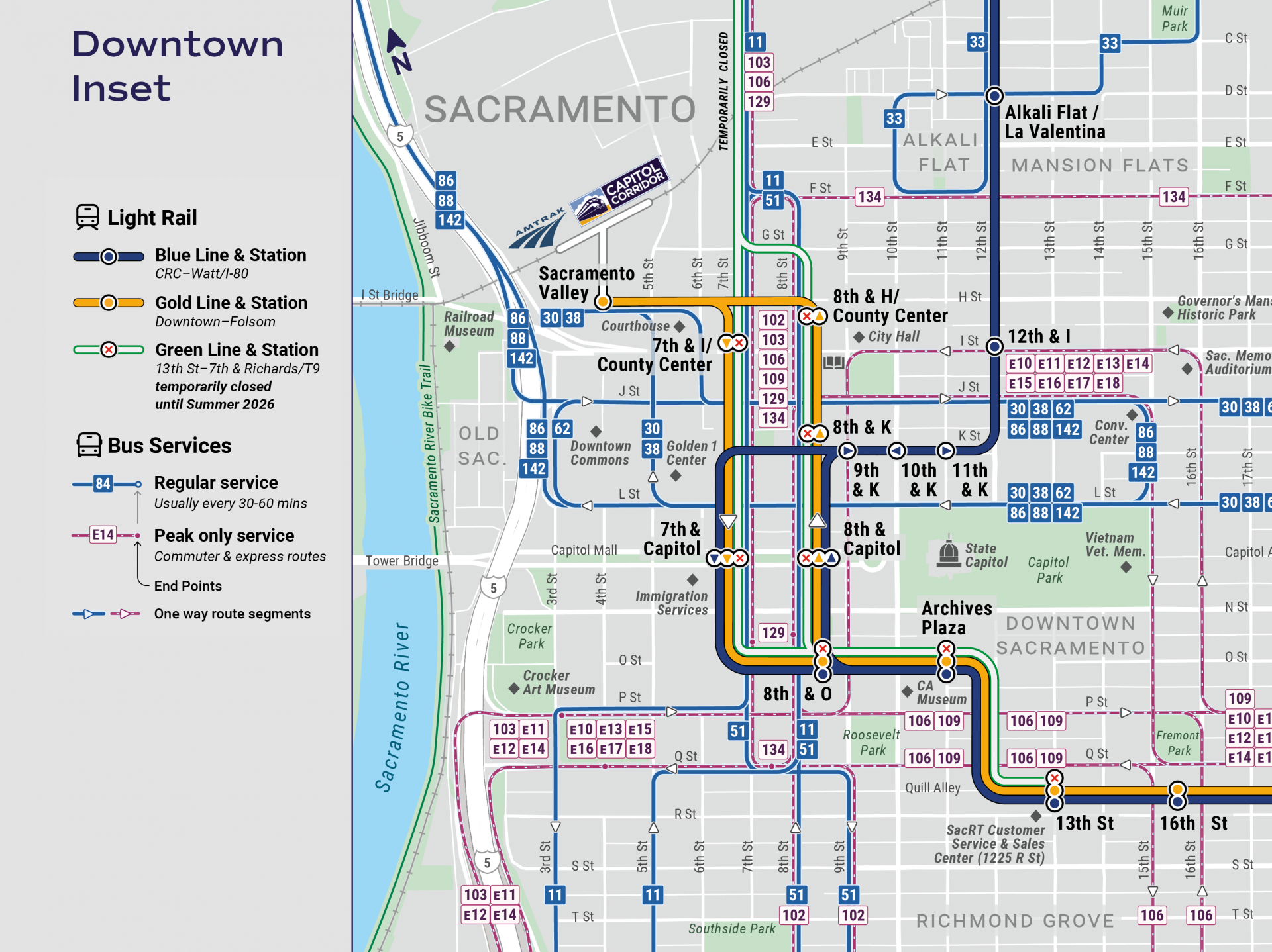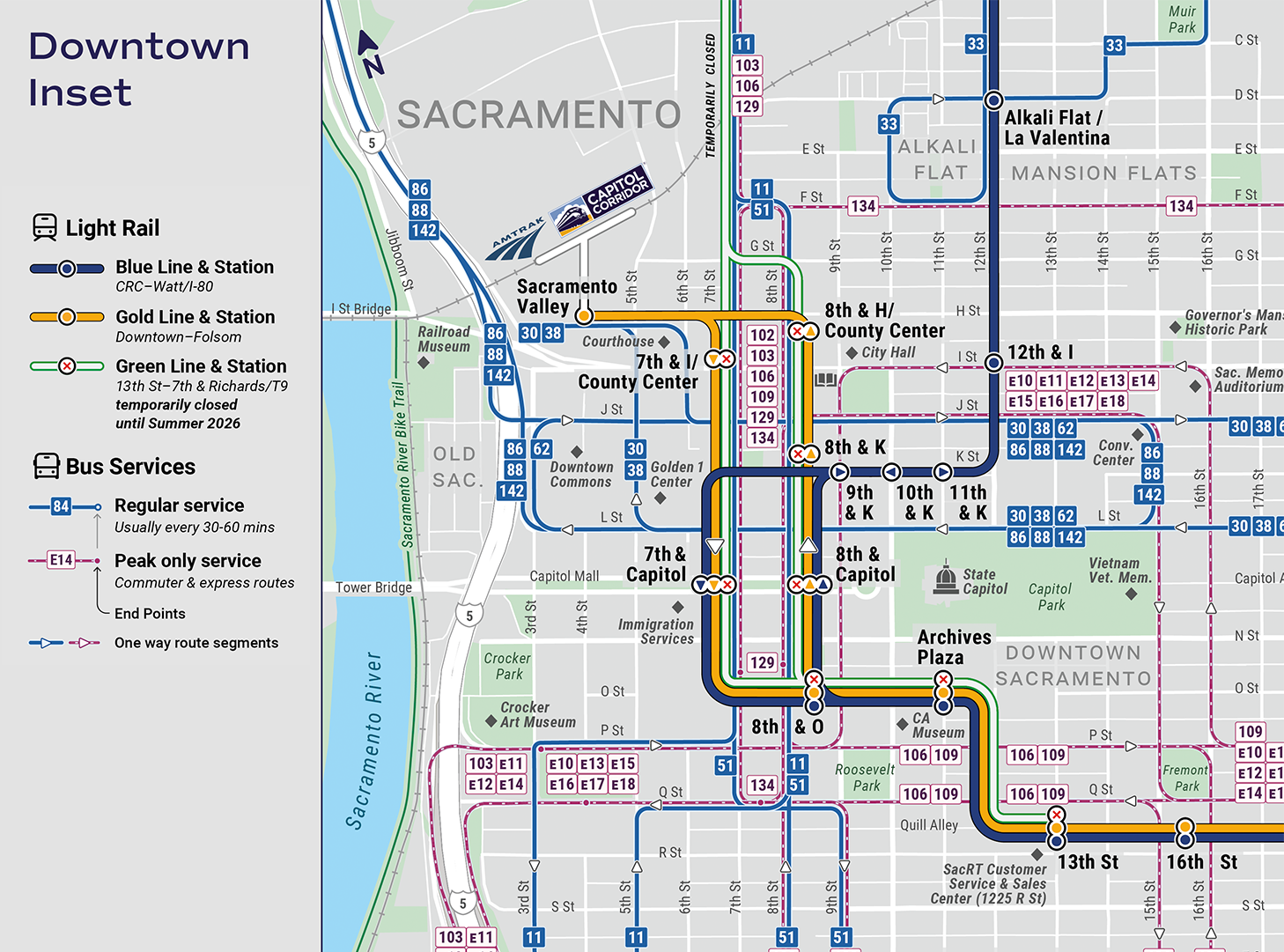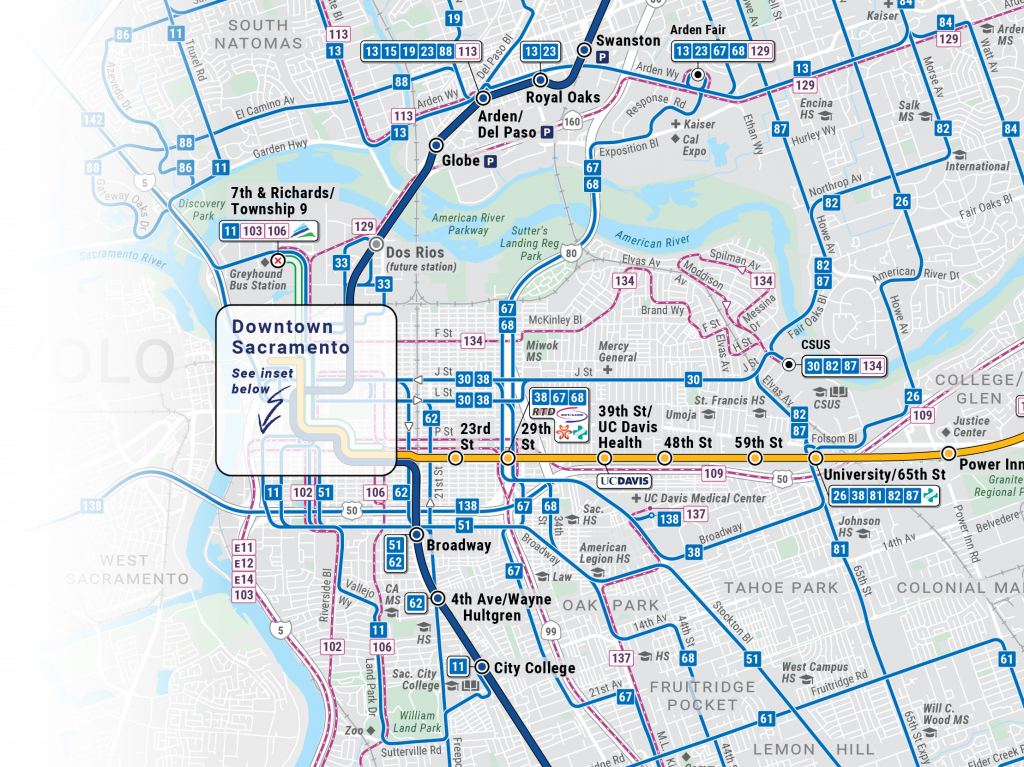 • Newly designed inset maps for areas needing additional clarity, including Downtown Sacramento and neighboring regional hubs