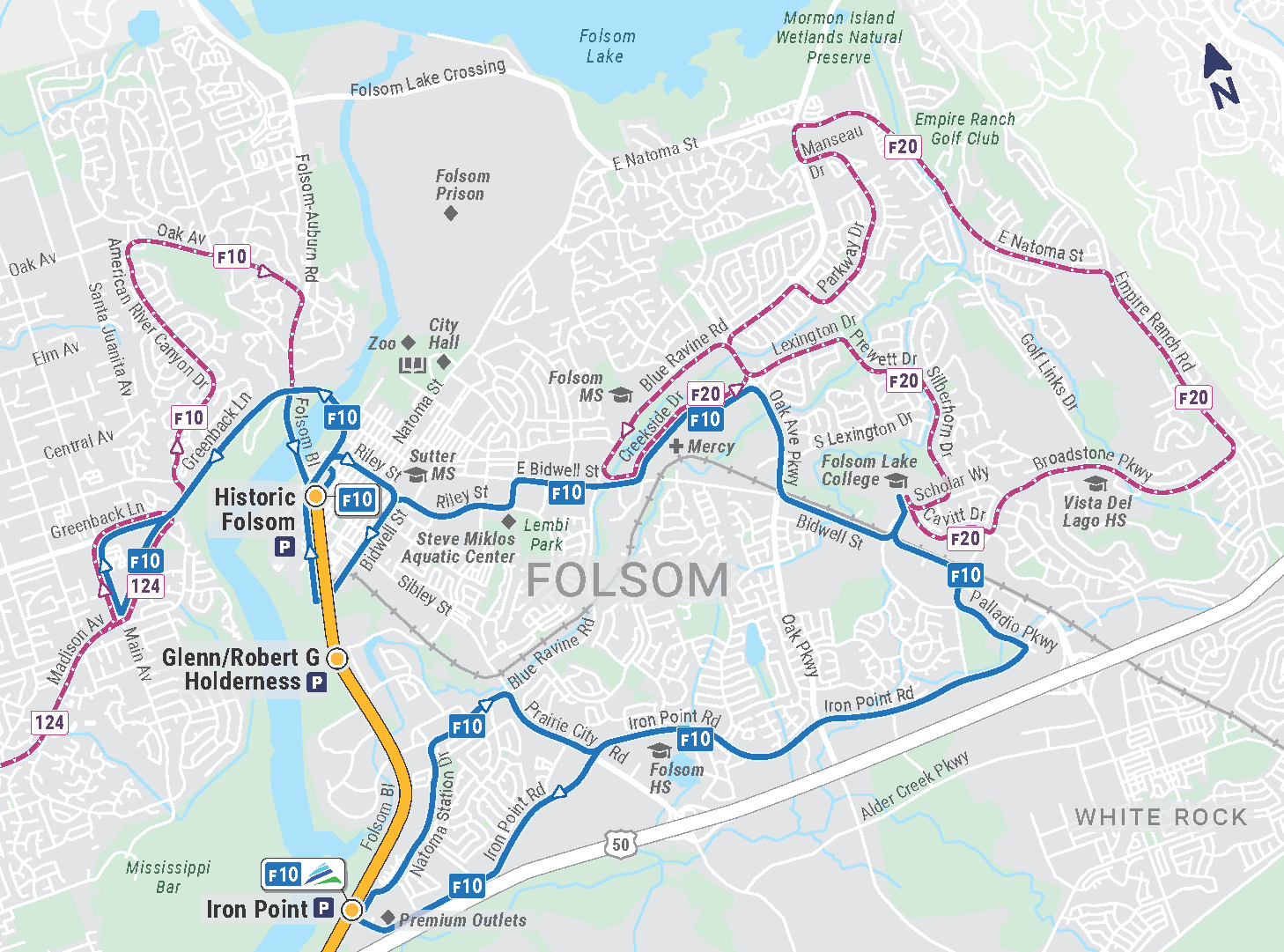• Added neighborhood streets, key landmarks, and contextual geography, modeled on modern transit map conventions while tailored to SacRT’s needs