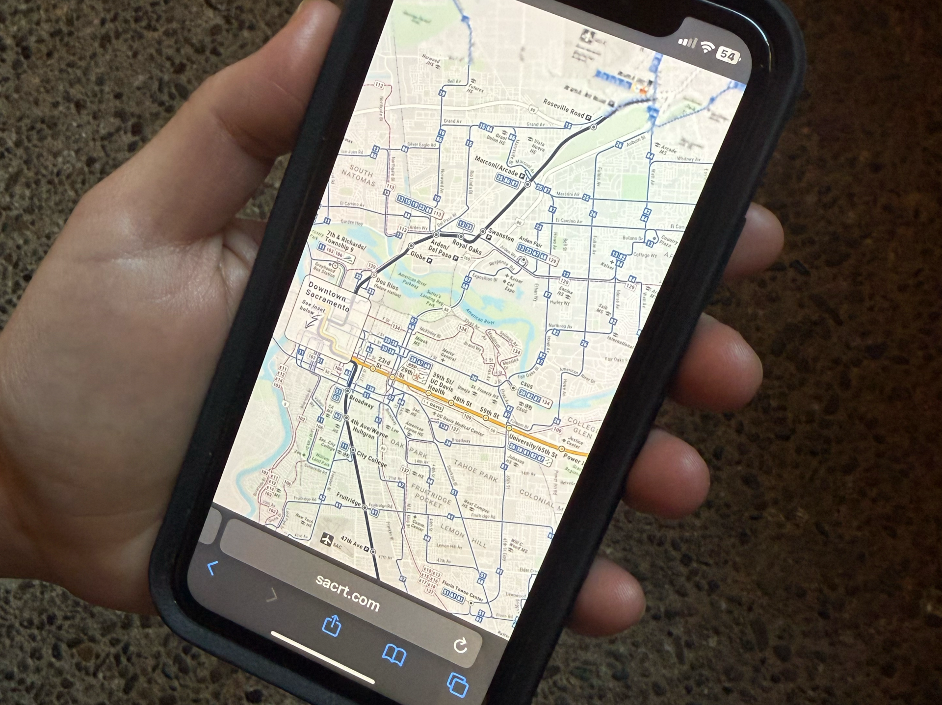 The downtown Sacramento, and surrounding, region of the new system map